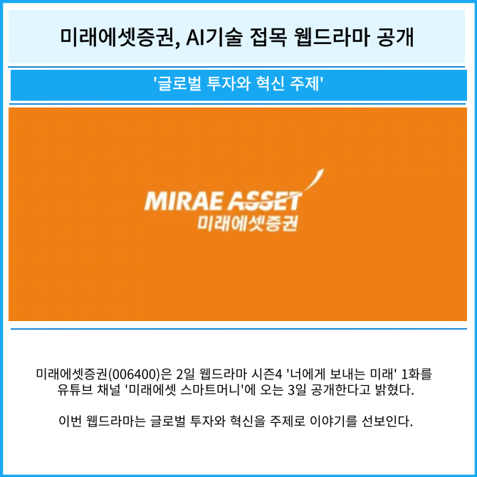 [카드] 미래에셋증권, AI기술 접목 웹드라마 공개
