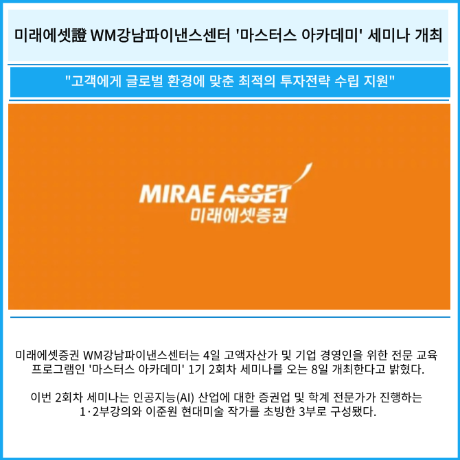 [카드] 미래에셋證 WM강남파이낸스센터 '마스터스 아카데미' 세미나 개최