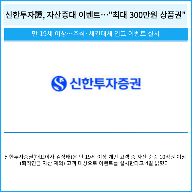 [카드] 신한투자證, 자산증대 이벤트…"최대 300만원 상품권"