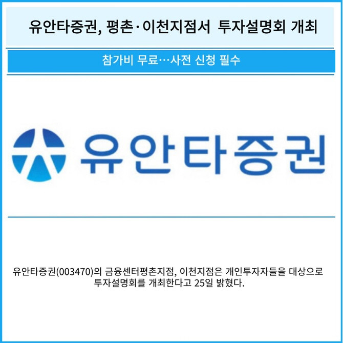 [카드] 유안타증권, 평촌·이천지점서 투자설명회 개최