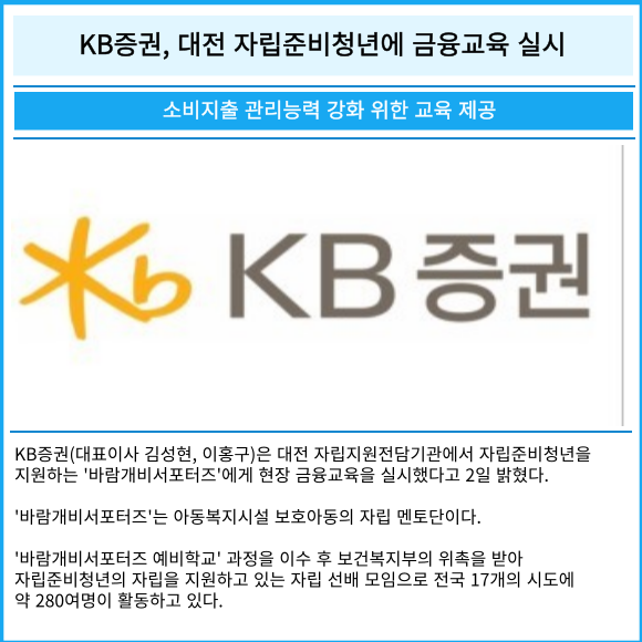 [카드] KB증권, 대전 자립준비청년에 금융교육 실시