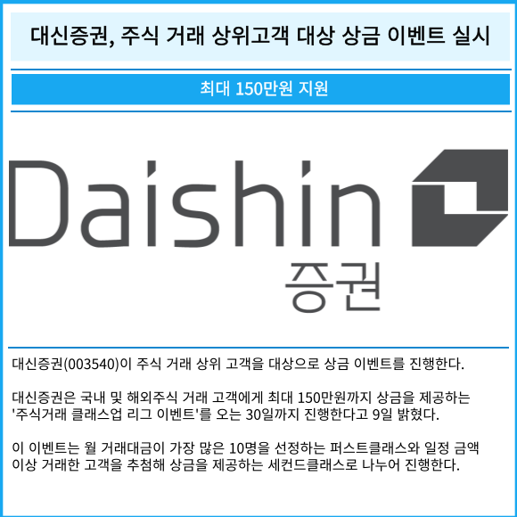 [카드] 대신증권, 주식 거래 상위고객 대상 상금 이벤트 실시