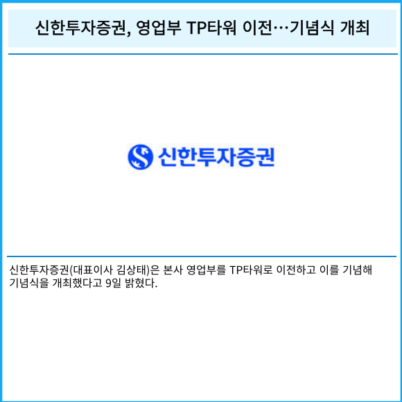 [카드] 신한투자증권, 영업부 TP타워 이전…기념식 개최