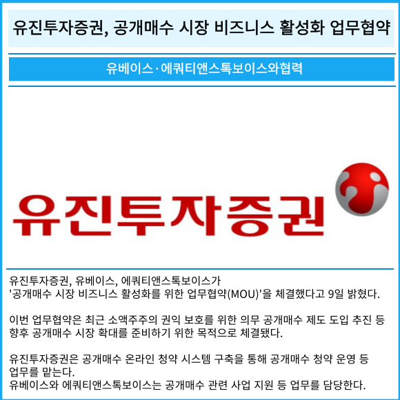 [카드] 유진투자증권, 공개매수 시장 비즈니스 활성화 업무협약