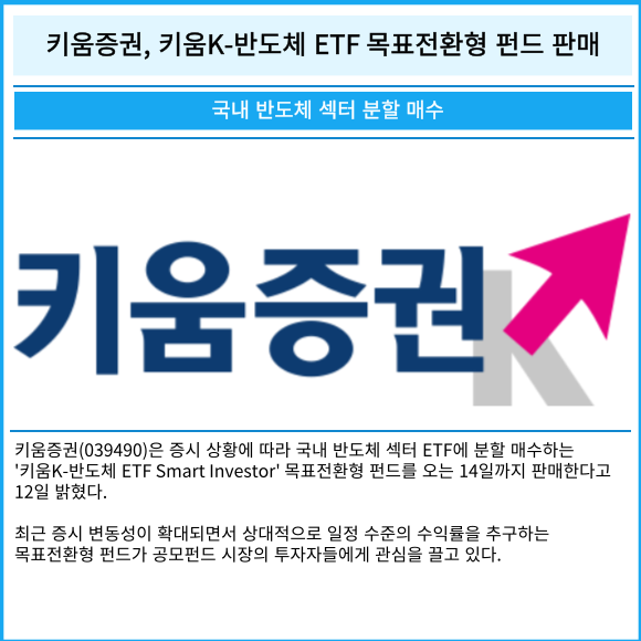 [카드] 키움증권, 키움K-반도체 ETF 목표전환형 펀드 판매
