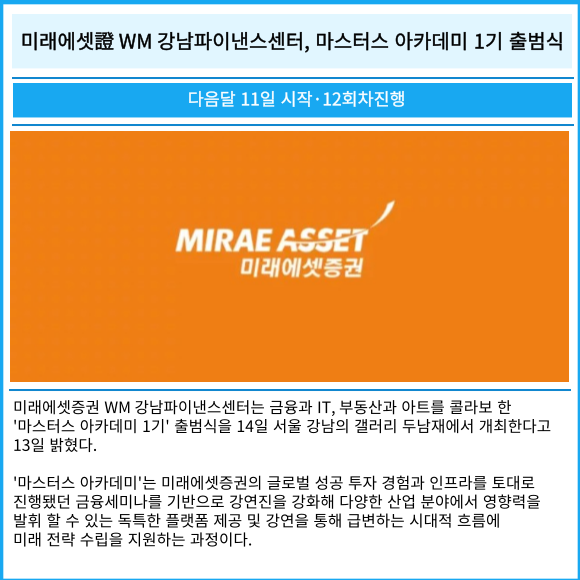 [카드] 미래에셋證 WM 강남파이낸스센터, 마스터스 아카데미 1기 출범식