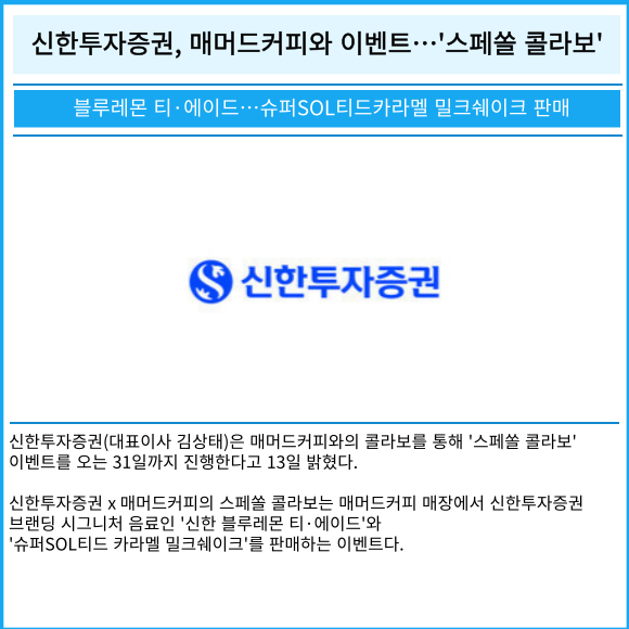 [카드] 신한투자증권, 매머드커피와 이벤트…'스페쏠 콜라보'