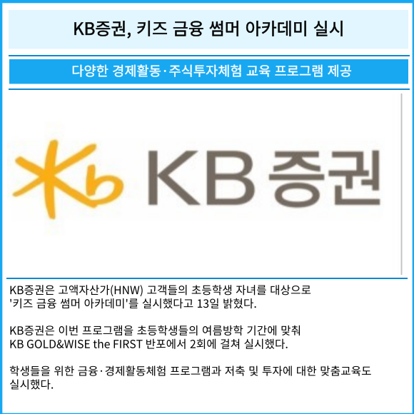 [카드] KB증권, 키즈 금융 썸머 아카데미 실시