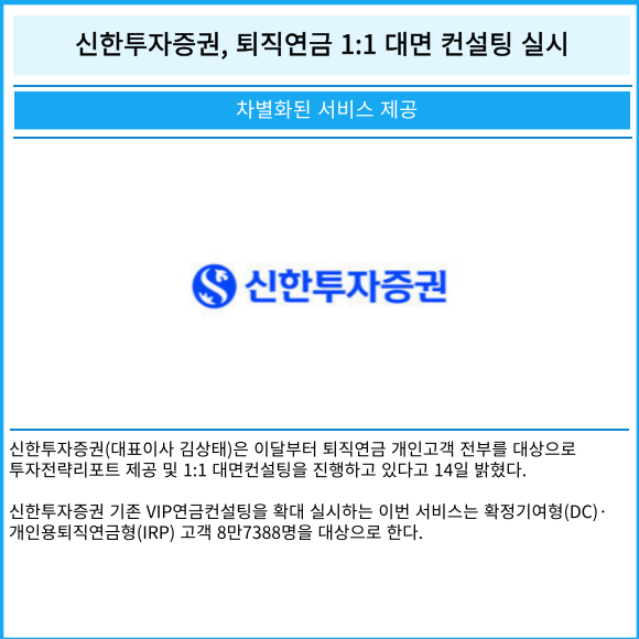 [카드] 신한투자증권, 퇴직연금 1:1 대면 컨설팅 실시