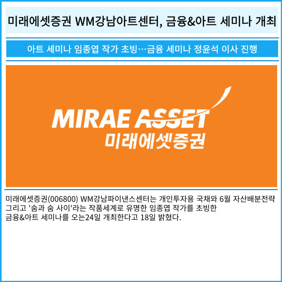 [카드] 미래에셋증권 WM강남아트센터, 금융&아트 세미나 개최