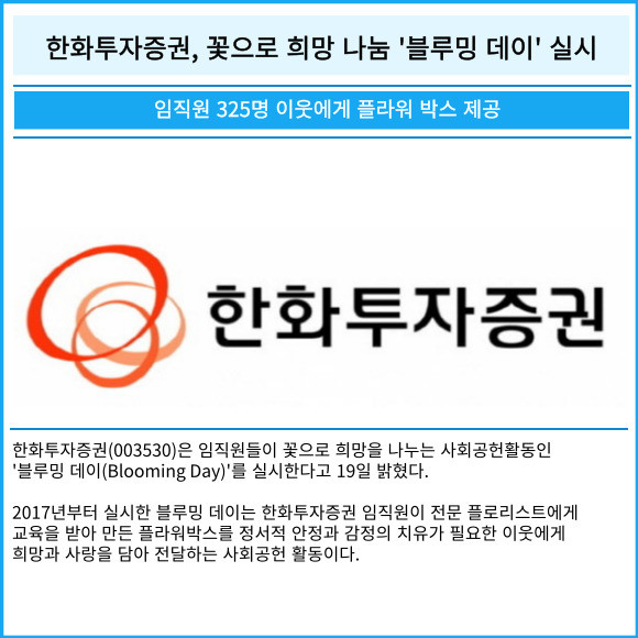 [카드] 한화투자증권, 꽃으로 희망 나눔 '블루밍 데이' 실시