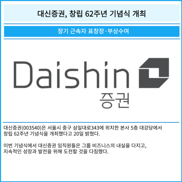[카드] 대신증권, 창립 62주년 기념식 개최