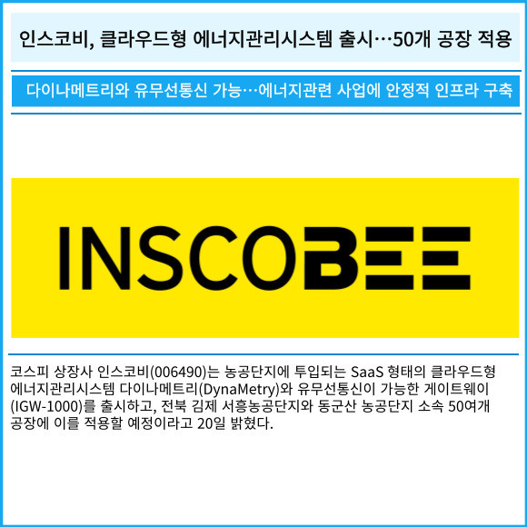 [카드] 인스코비, 클라우드형 에너지관리시스템 출시…50개 공장 적용