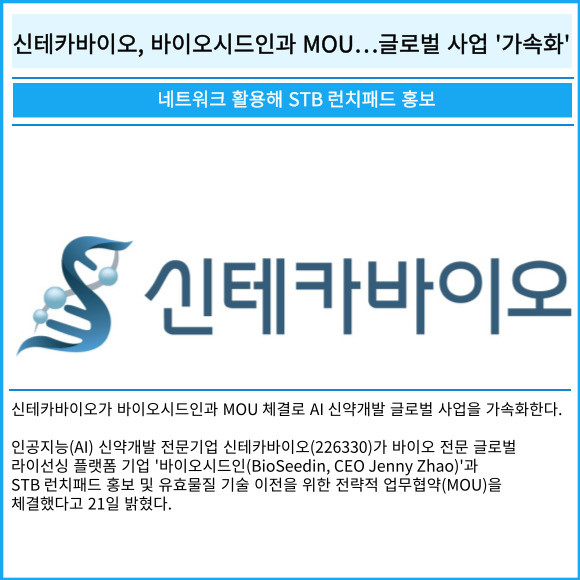 [카드] 신테카바이오, 바이오시드인과 MOU…글로벌 사업 '가속화'