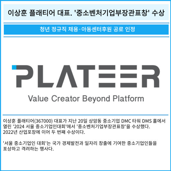 [카드] 이상훈 플래티어 대표 '중소벤처기업부장관표창' 수상