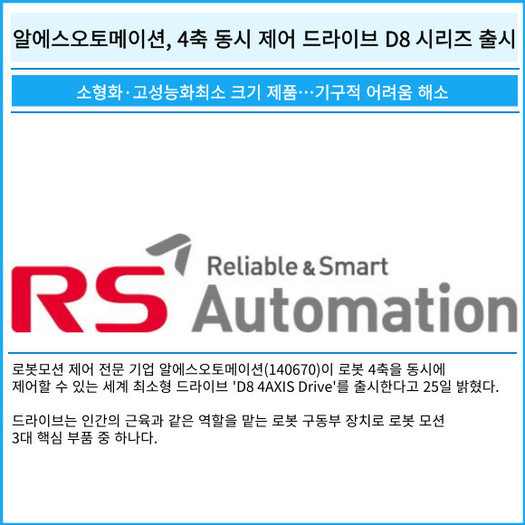 [카드] 알에스오토메이션, 4축 동시 제어 드라이브 D8 시리즈 출시