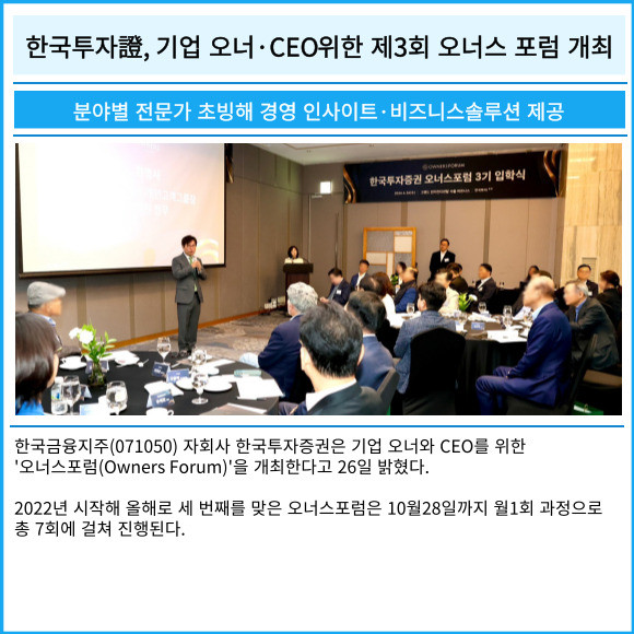 [카드] 한국투자證, 기업 오너·CEO 위한 제3회 오너스 포럼 개최