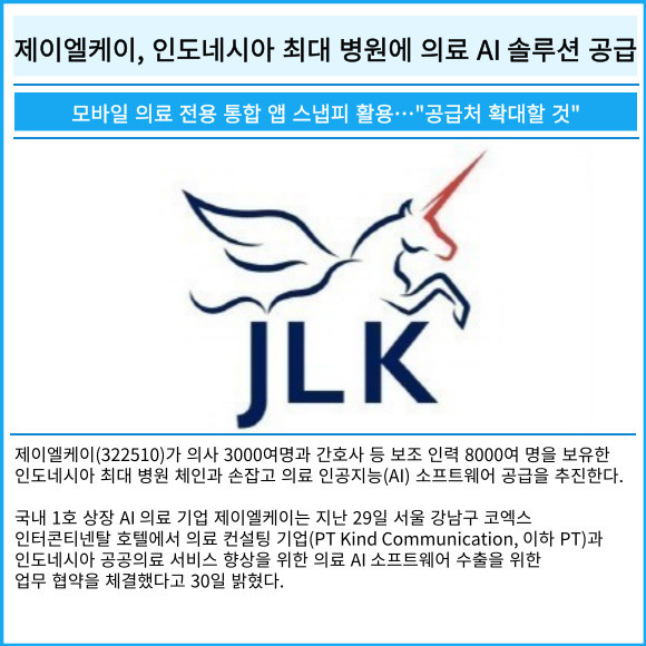 [카드] 제이엘케이, 인니 최대 병원에 의료 AI 솔루션 공급