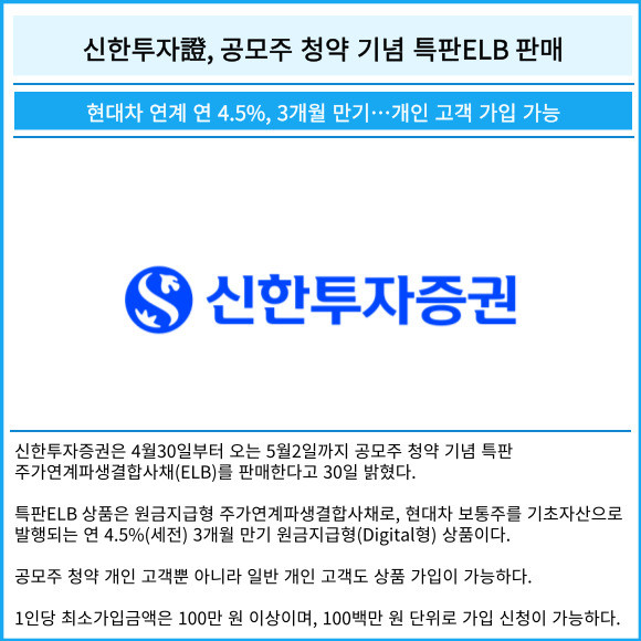 [카드] 신한투자證, 공모주 청약 기념 특판ELB 판매