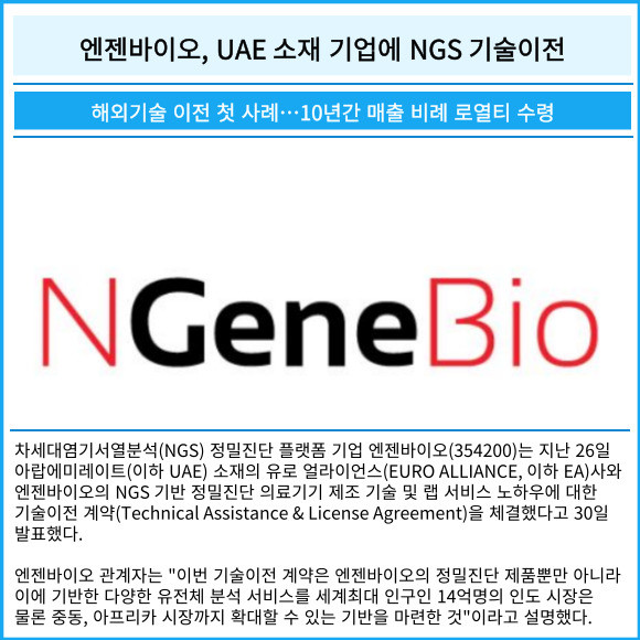 [카드] 엔젠바이오, UAE 소재 기업에 NGS 기술이전