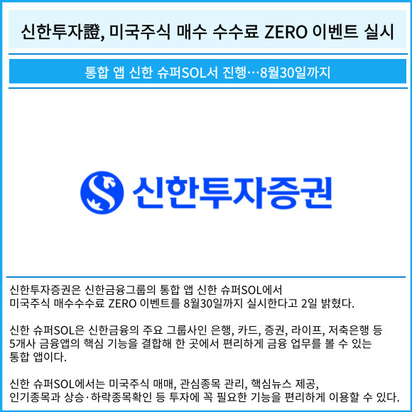 [카드] 신한투자證, 미국주식 매수 수수료 ZERO 이벤트 실시