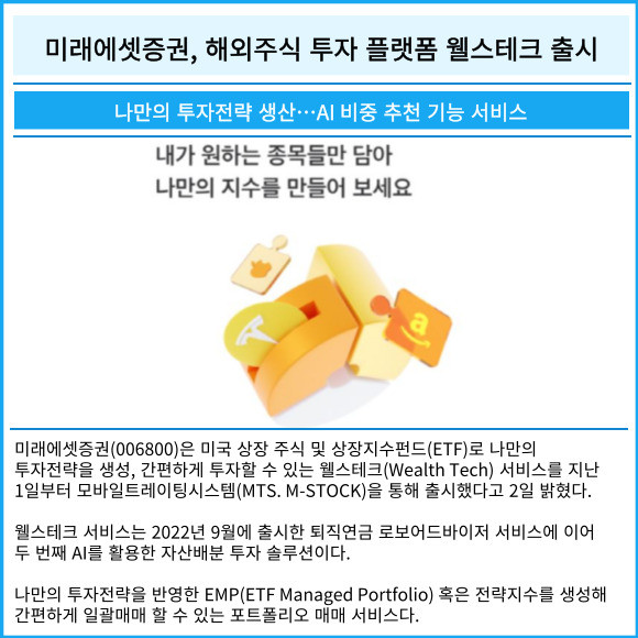 [카드] 미래에셋증권, 해외주식 투자 플랫폼 웰스테크 출시