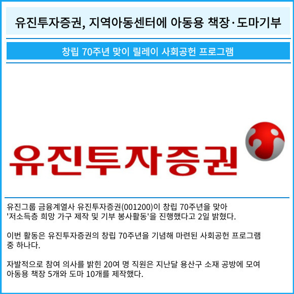 [카드] 유진투자증권, 지역아동센터에 아동용 책장·도마 기부