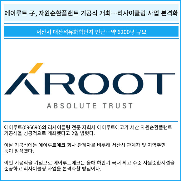 [카드] 에이루트 子, 자원순환플랜트 기공식 개최…리사이클링 사업 본격화