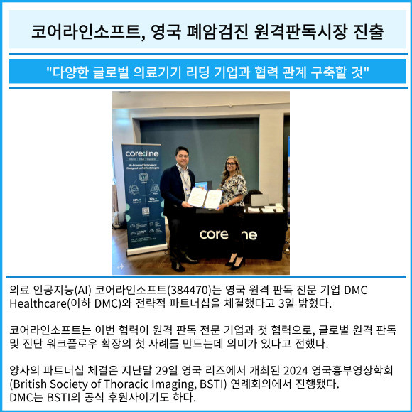 [카드] 코어라인소프트, 영국 폐암검진 원격판독시장 진출