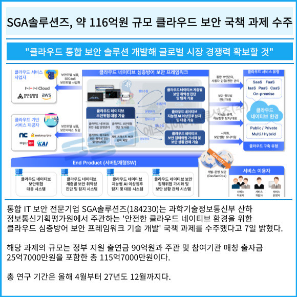 [카드] SGA솔루션즈, 약 116억원 규모 클라우드 보안 국책 과제 수주