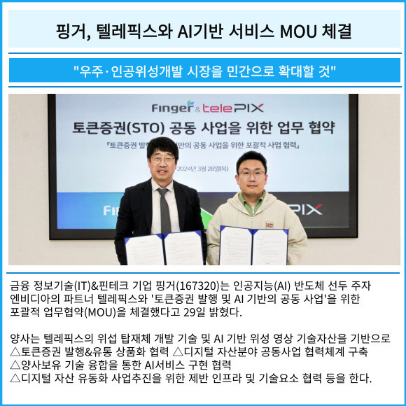 [카드] 핑거, 텔레픽스와 AI기반 서비스 MOU 체결