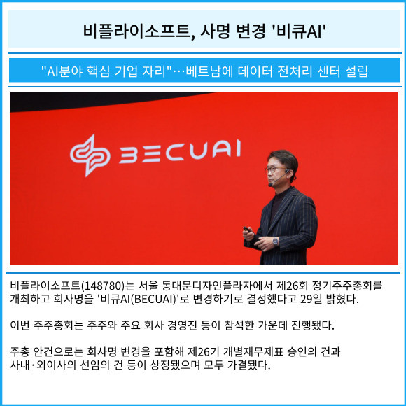 [카드] 비플라이소프트, 비큐AI로 사명 변경