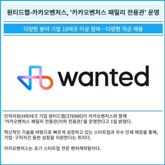 [카드] 원티드랩-카카오벤처스, '카카오벤처스 패밀리 전용관' 운영