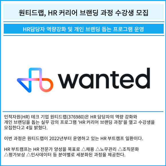 [카드] 원티드랩, HR 커리어 브랜딩 과정 수강생 모집