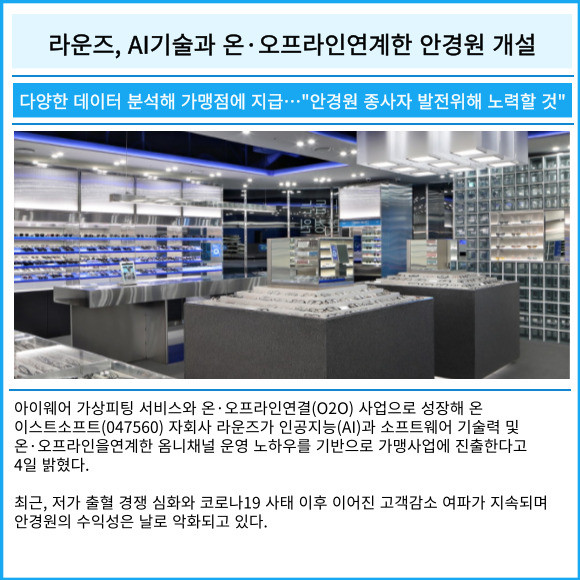 [카드] 라운즈, AI기술과 온·오프라인 연계한 안경원 개설