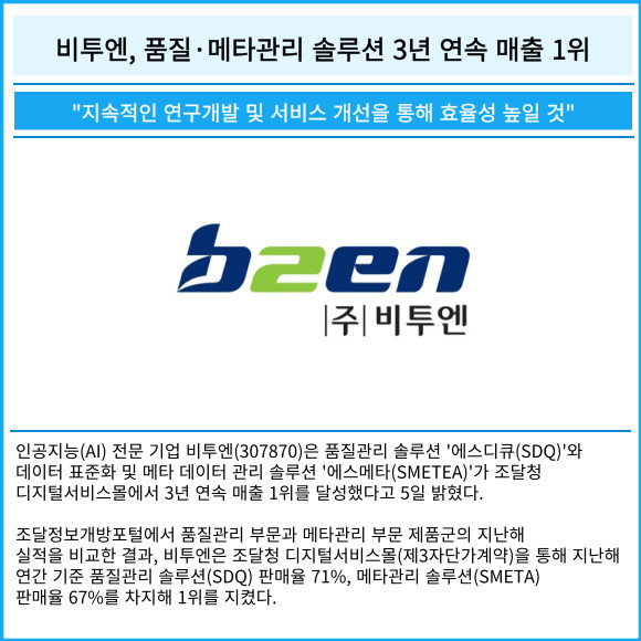 [카드] 비투엔, 품질·메타 관리 솔루션 3년 연속 매출 1위