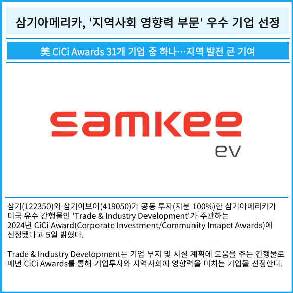 [카드] 삼기아메리카, 美 '지역사회 영향력 부문' 기업 선정