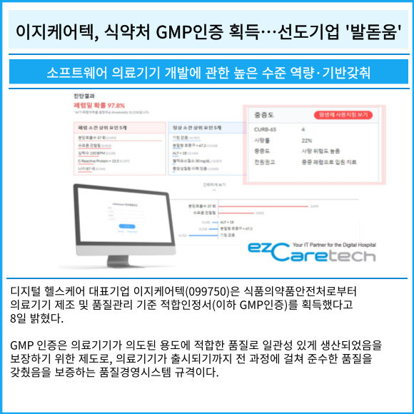 [카드] 이지케어텍, 식약처 GMP인증 획득…선도기업 '발돋움'