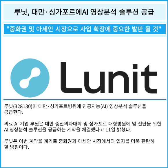 [카드] 루닛, 대만·싱가포르에 AI 영상분석 솔루션 공급