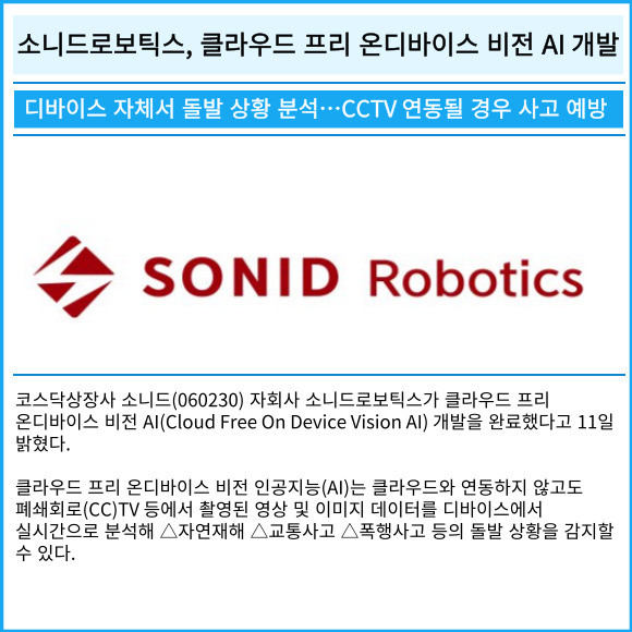 [카드] 소니드로보틱스, 클라우드 프리 온디바이스 비전 AI 개발