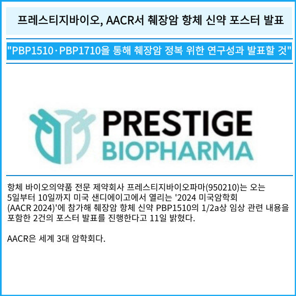 [카드] 프레스티지바이오, AACR서 췌장암 항체 신약 포스터 발표