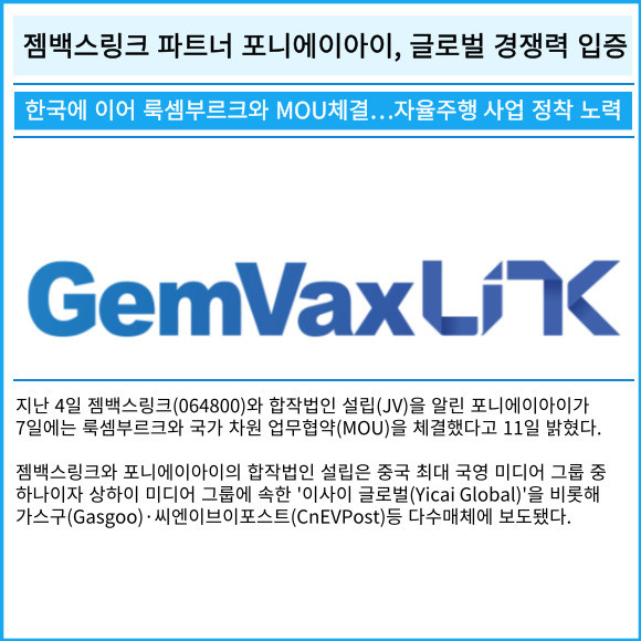 [카드] 젬백스링크 파트너 포니에이아이, 글로벌 경쟁력 입증