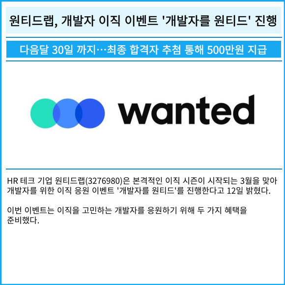 [카드] 원티드랩, 개발자 이직 이벤트 '개발자를 원티드' 진행