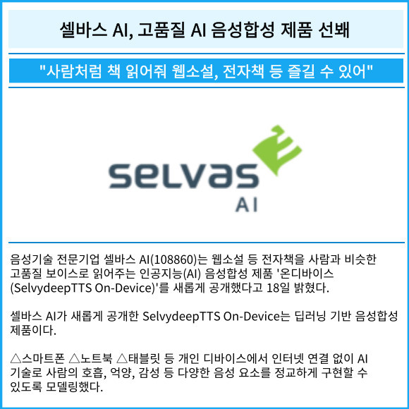 [카드] 셀바스 AI, 고품질 AI 음성합성 제품 선봬