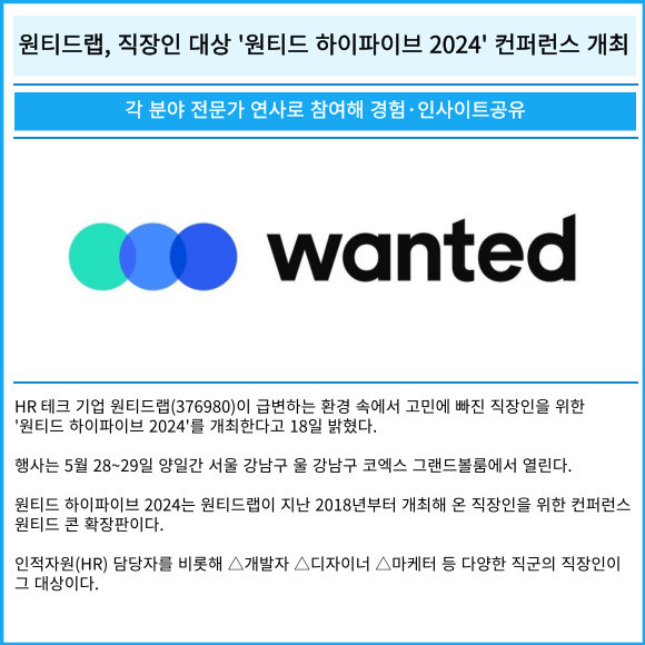 [카드] 원티드랩, 직장인 대상 '원티드 하이파이브 2024' 컨퍼런스 개최