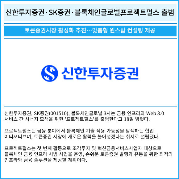 [카드] 신한투자증권·SK증권·블록체인글로벌, 프로젝트펄스 출범