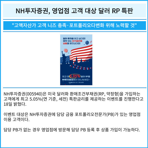 [카드] NH투자증권, 영업점 고객 대상 달러 RP 특판