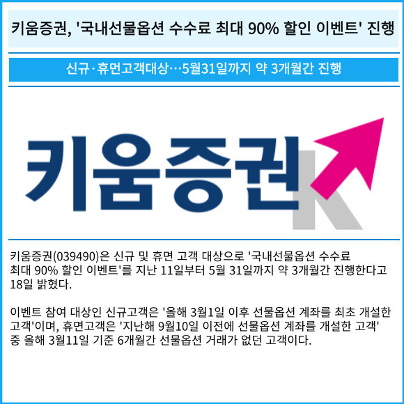 [카드] 키움증권, '국내선물옵션 수수료 최대 90% 할인 이벤트' 진행