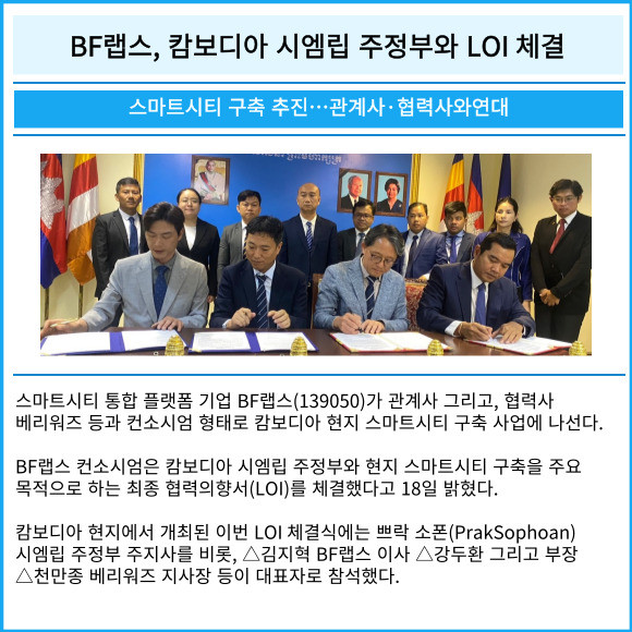 [카드] BF랩스, 캄보디아 시엠립 주정부와 LOI 체결