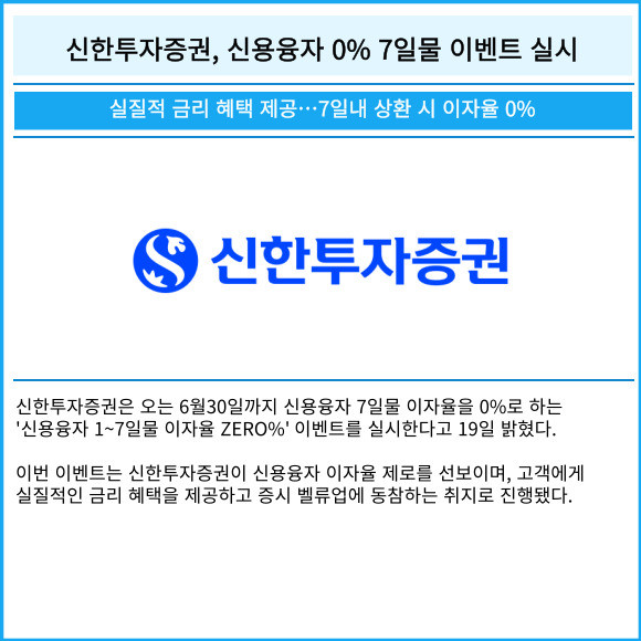 [카드] 신한투자증권, 신용융자 0% 7일물 이벤트 실시